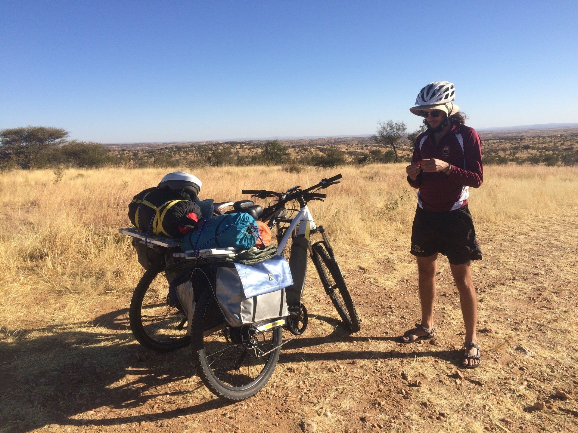 Gear loaded onto the back of an Ebikes4Africa bicycle and my own bicycle fitted with a rack from our E-bike friends - we had enough bully-beef, tube patches, warm stuff and excitement with us to take on two days of cycling in the Khomas Hochland. We didn't know where we would sleep or where we would find our next water source, adding just enough danger to our very controlled adventure to make us feel like boys again.