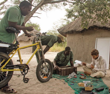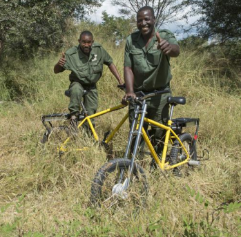 Solar powered electric bikes are assisting game guards to patrol in Salambala Conservacy.